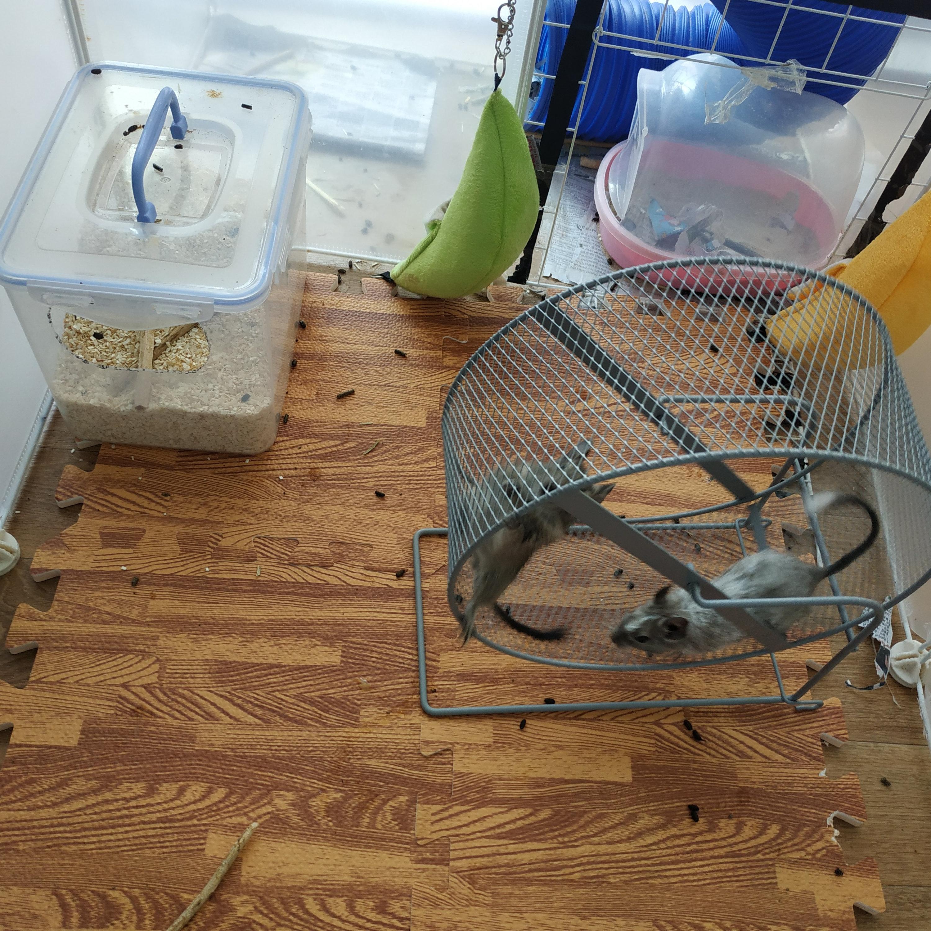 배가 좀 차면 이제부터 쳇바퀴를 돌리기 시작한다. 사육 공간이 그렇게 좁은 것도 아닌데 쳇바퀴 타는 것을 너무 좋아한다. 왜 설치류는 쳇바퀴를 좋아할까? 신기하다.