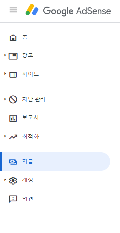 1. 우선 구글 애드센스에 접속 후, 왼쪽 목록에서 지급을 클릭
