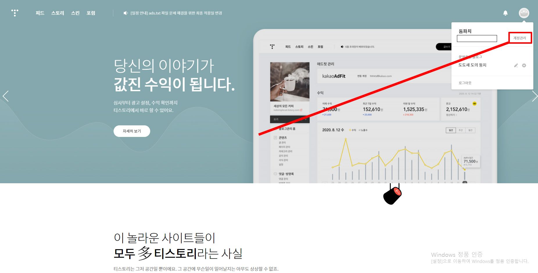 티스토리 블로그 로그인 - 계정관리