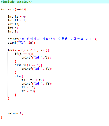 C언어 피보나치 수열