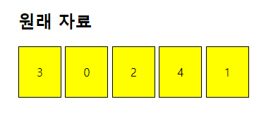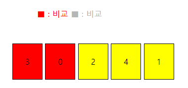 우선 첫0번째 요소 3과 1번째 요소 0을 비교합니다. (순번을 0부터 시작하겠습니다.)