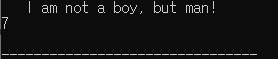 앞쪽을 공백으로 시작했습니다. 공백으로 구별되는 단어 개수 7을 출력하는 것을 볼 수 있습니다.