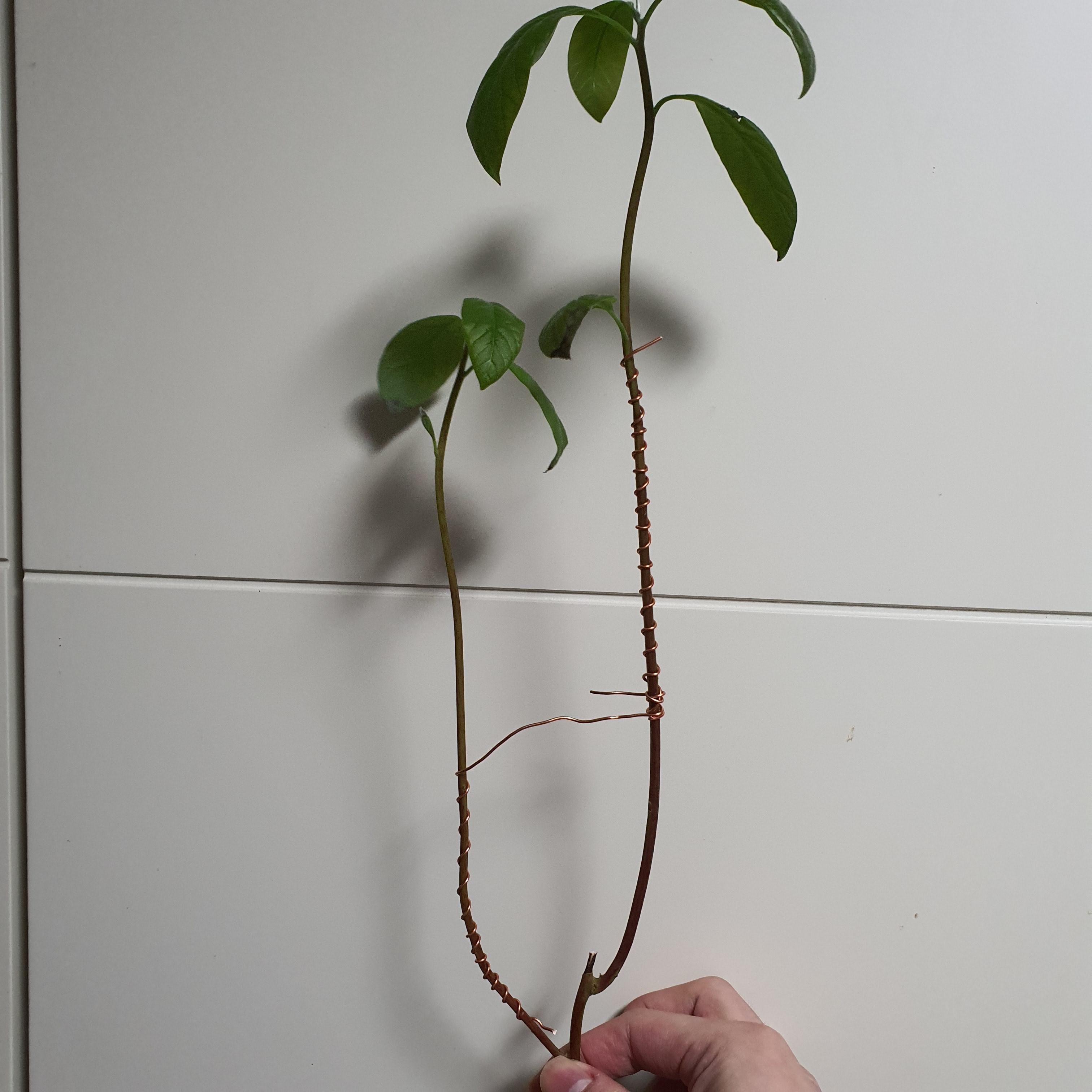 그렇기때문에 물꽂이를 한 이 아보카를 집에 굴러다니는 철사로 모양을 잡아줬습니다.
