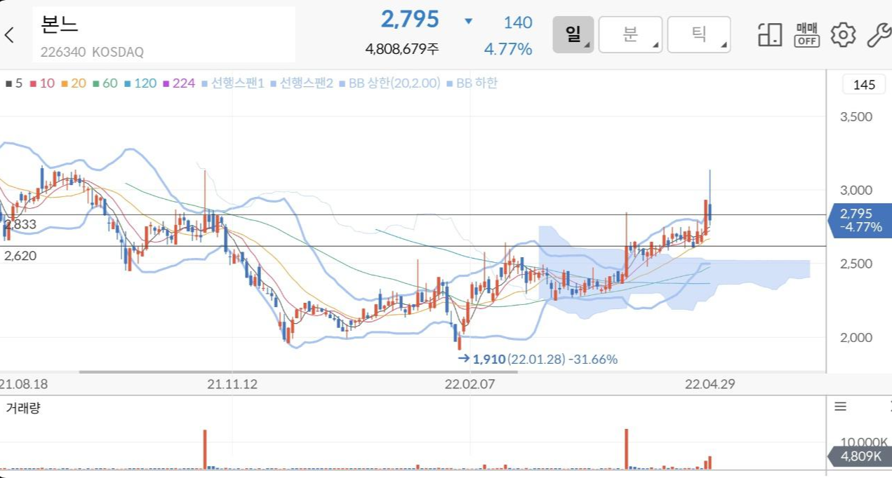 일봉차트 및 수익률