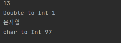*char to Int로 char형을 Int로 변환하여 출력하면 a의 아스키코드값 97이 출력된다