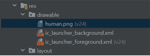나는 human이라는 이름의 파일을 drawable 내부에 삽입했다.