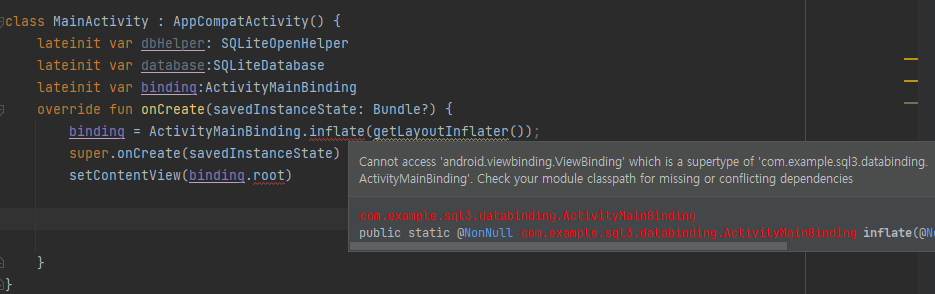 뷰 바인딩을 하던 중 위의 오류가 발생했다.