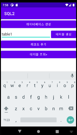 android:text="테이블 생성"/>
