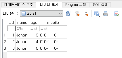 방금 앱에서 삽입했던 데이터들이 제대로 들어가 있음을 볼 수 있다.