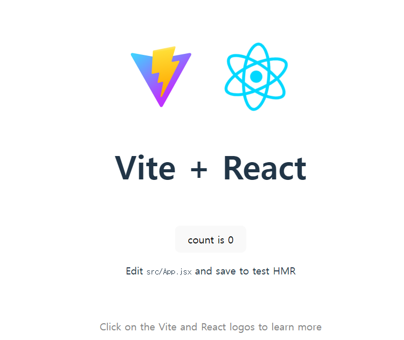 브라우저를 이용해 5173 포트로 접속하면 성공적으로 프로젝트가 시작되었음을 확인 할 수 있다.