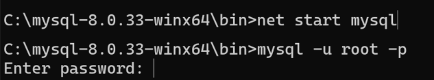 - 윈도우 운영체제에서 MySQL 서비스를 시작하는 명령어