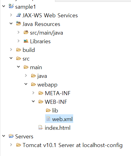 - : 서블릿 클래스의 전체 경로를 지정. 여기서는 "sample1.HelloServlet" 클래스를 사용