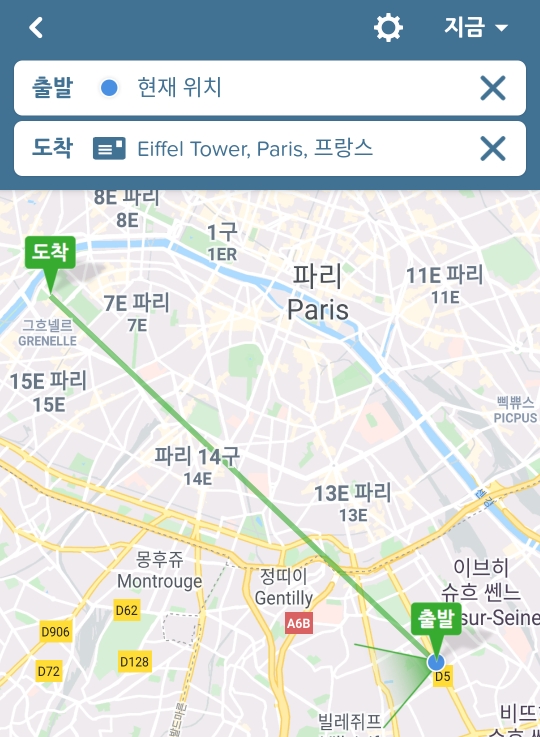 나는 대중적으로 많이 찾아가는 파리 에펠탑으로 향하는 길을 검색해 보았다.