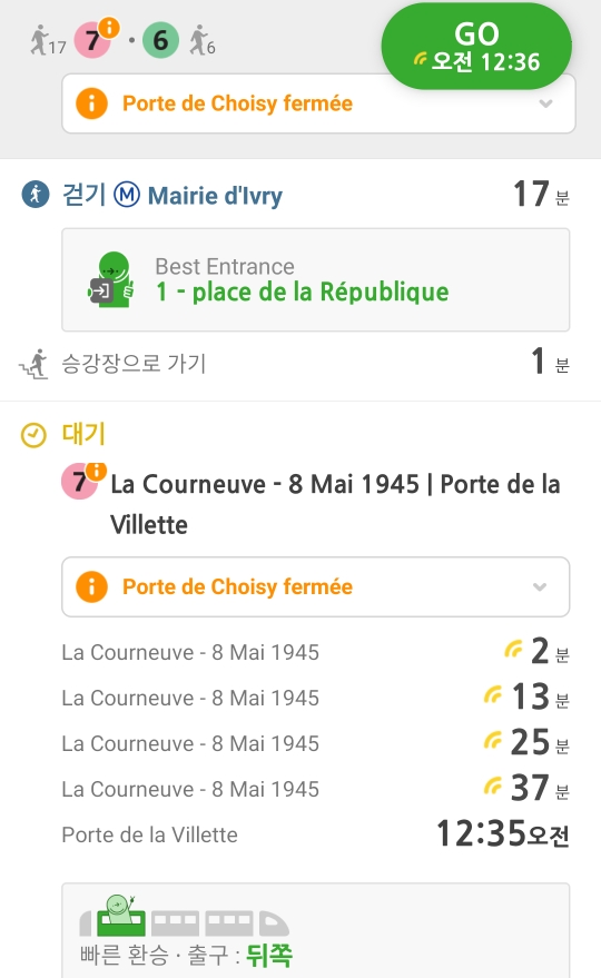 그렇담 내가 지나칠 역들과 걸리는 시간, 심지어 가장 빠른 환승구 출구까지 보여준다. 이 어플만 있다면 낯선 파리, 유럽 지하철에서 헤매지 않을 수 있다.