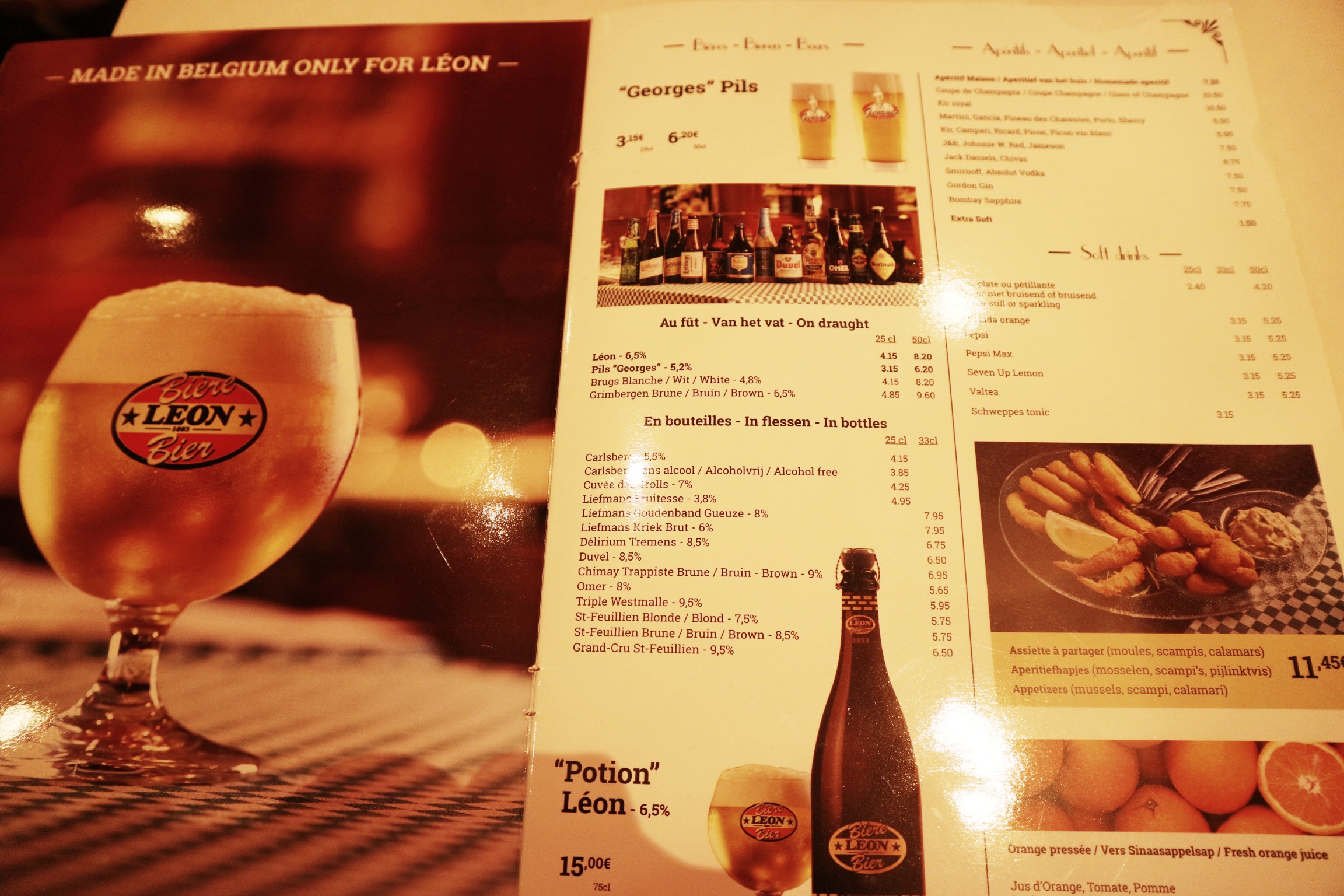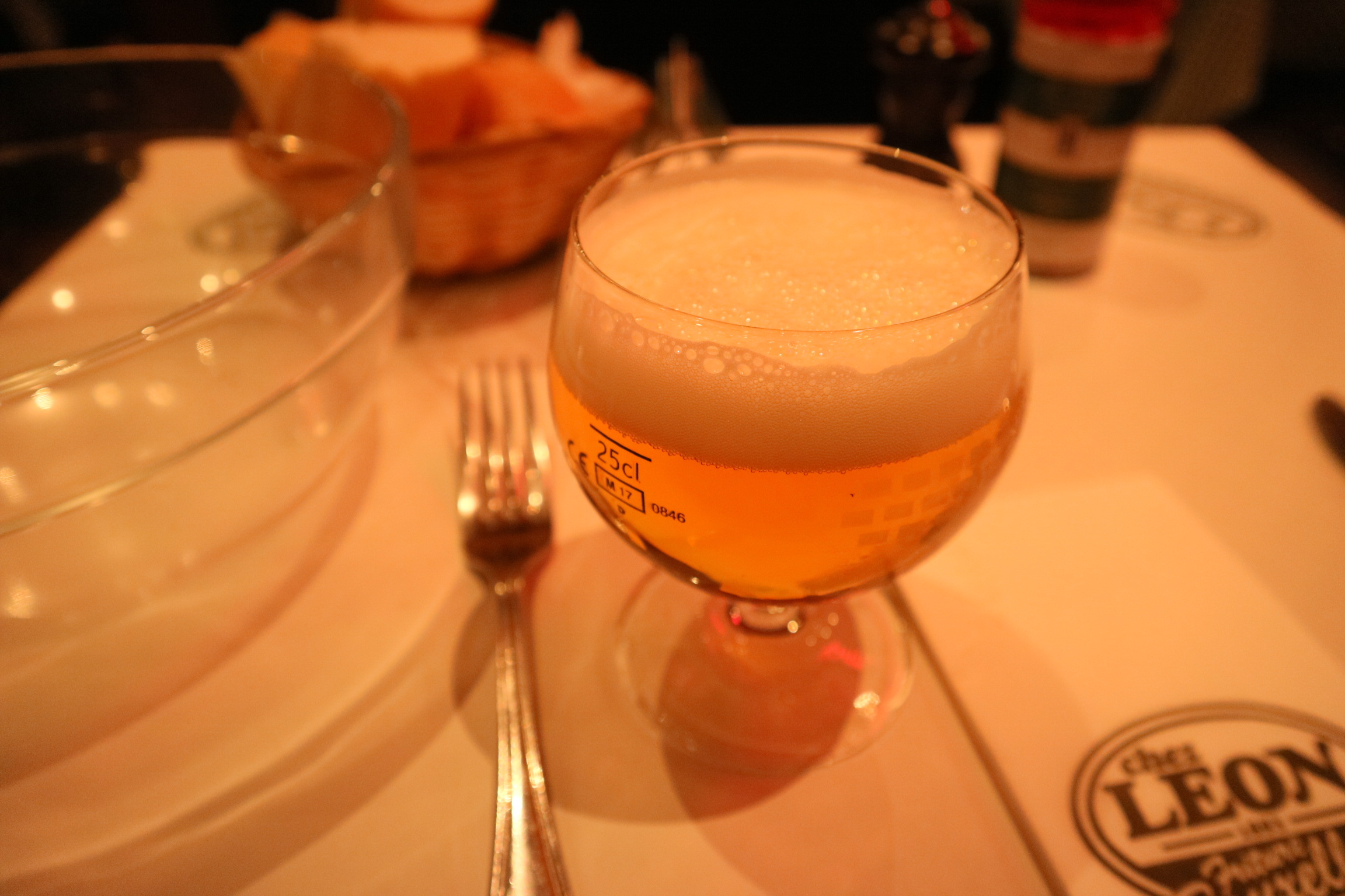 우선 나는 LÉON 맥주 25cl(250ml) 하나를 주문했다. 맥주는 전용 잔에 담겨져 나온다.